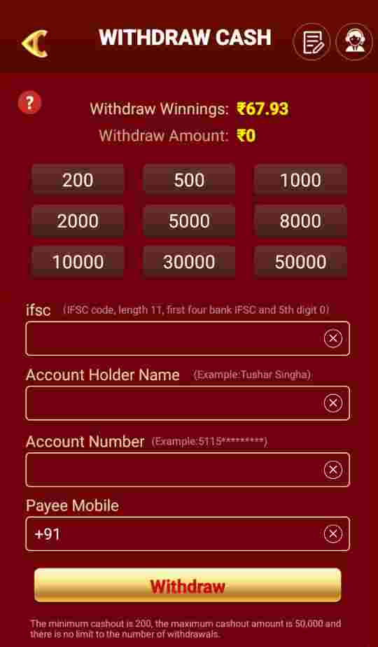 sabse pahle 777 winner club apk ko open kijiye FIR aapko niche withdrawal wala option dikhai dega use per click karke aap apna bank account recap bank account IFSC code FIR Bank holder name aur mobile number submit karke amount ko select karna hai.aur FIR withdrawal lagana hai.to aapke account mein kuchh hi samay mein petrol Kiya hua rupaye success ho jata hai.jise aap upi ke madhyam se ya Apne Bank jakar nikal sakte hain.